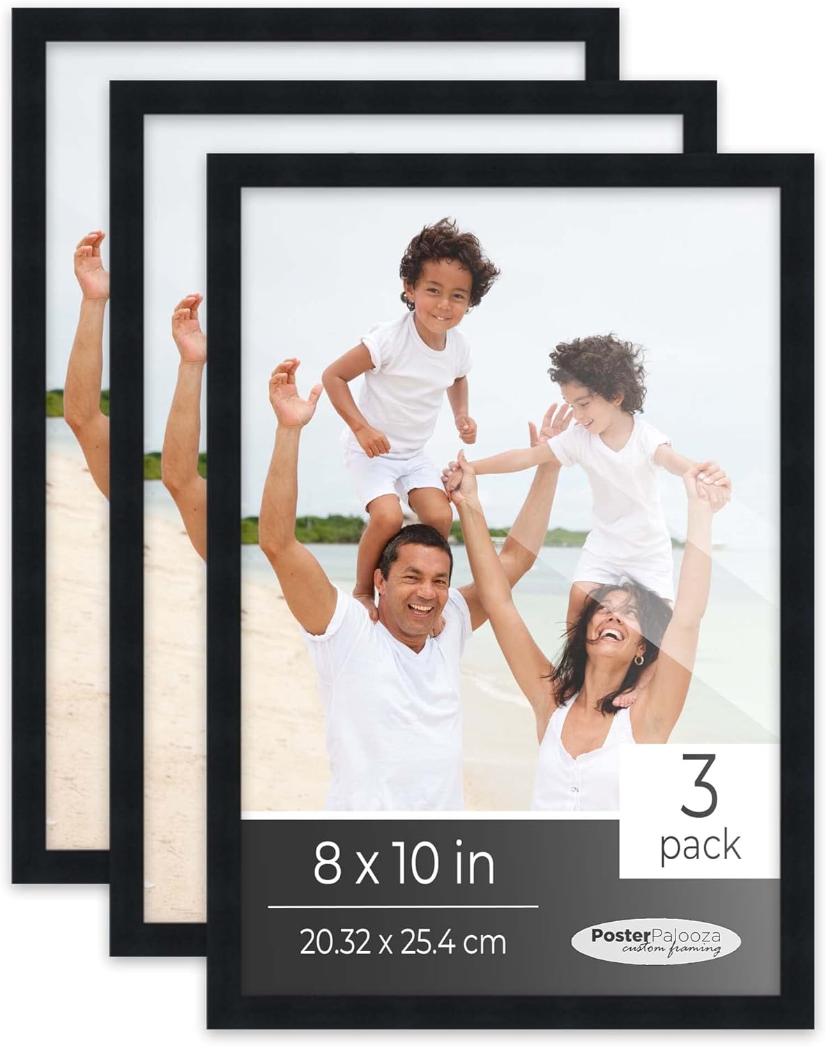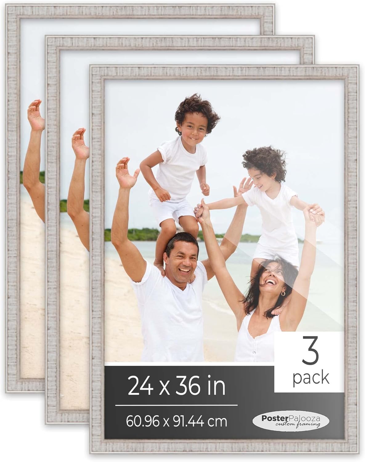 Pack of 3 black picture frames for 24x36 photos. The overall dimensions for each frame are 25.5x37.5 inches. Our black frames feature a frame-grade UV-resistant acrylic front and acid-free foam board backing. Backload your 24x36 images by bending the clips along the back of the frame. This solid wood moulding is 0.75 inches. Each set includes hanging hardware for 3 frames, specially selected based on the size of your frames for safe and easy mounting. Install your hanging hardware to hang vertically or horizontally. This 24x36 black frame set can create an instant frame gallery wall.. Creating a gallery wall is easy with these 3 black frames! These 3 frames are shipped safely and securely in our custom boxes to keep your solid wood black picture frames safe in transit. Each frame in your 3 piece frame set is proudly handcrafted in the USA!